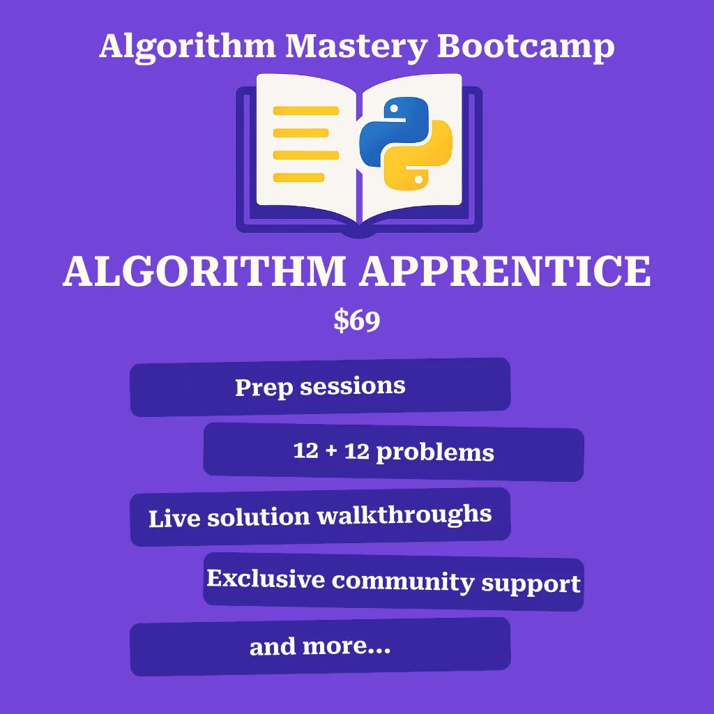 If you’ve been wanting to finally feel confident tackling algorithmic problems, sharpen your Python skills, and learn to think like a real programmer & problem-solver, this is your chance.